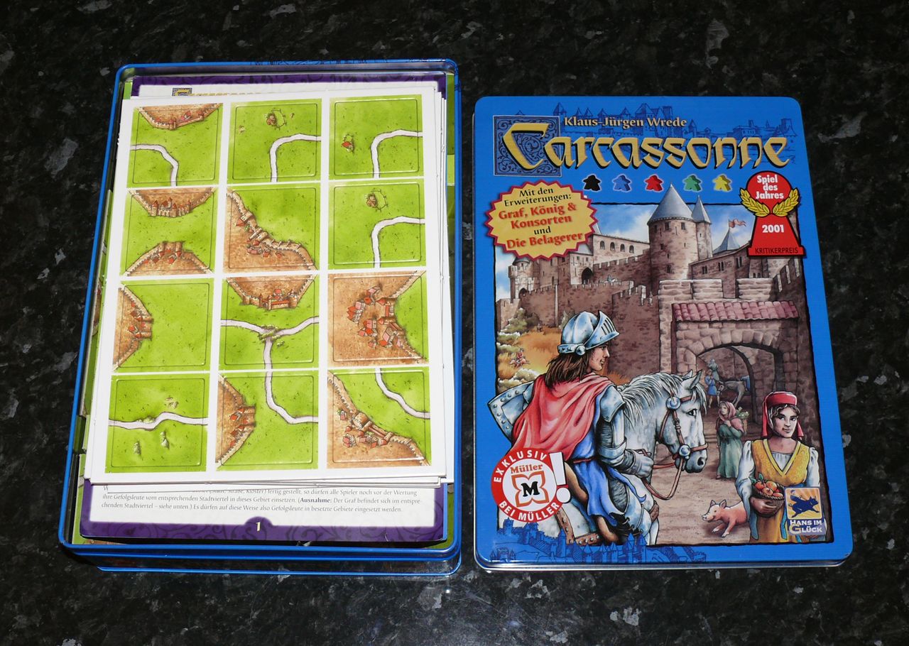 Atsevišķi gribu atzīmēt dāvanu, ko man uzdāvināja Carcassonne vācu foruma dalībnieks Benny – Carcassonne ierobežots izdevums metāla kastē no Müller izdevniecības, kas ietver 6. paplašinājumu un jau pieminēto “Die Belagerer”, kā rezultātā man tagad ir divas “Die Belagerer” kopijas!